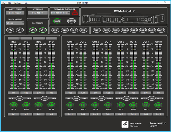 Eine Software für alle Geräte. Der DSM Network Client scannt das angeschlossene Netzwerk automatisch und listet die gefundenen DSM-Geräte auf. Dabei kann es sich um SDX-Endstufen, aktive Lautsprecher, aktive Line-Array-Lautsprecher oder unsere DSM-19"-Geräte handeln. Mit nur einem Klick öffnen Sie das Konfigurationsmenü des entsprechenden Geräts. Im Network Client können Sie auch Geräte gruppieren, wodurch Änderungen in der Konfiguration schnell und sicher in der gesamten Gruppe durchgeführt werden.