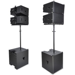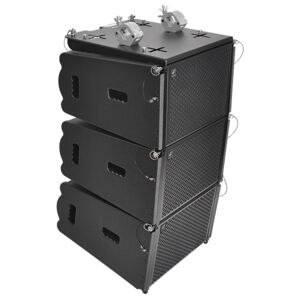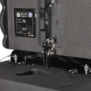 Die PCS-110L ist der beste Kompaktlautsprecher mit hoher Leistung für vertikale Line-Array-Säulen. Er kann in Flightframes mit bis zu 24 Einheiten eingesetzt werden. Das mechanische Design ermöglicht eine vertikale Einstellung von 0° bis 10° mit einer Auflösung von 1,0° pro Schritt. Der Vertikalwinkel PCS-110L ist mit einer einfachen, aber cleveren mechanischen Bremse ausgestattet, die das Einrichten deutlich erleichtert. Unsere Flyware besteht ausschließlich aus hochwertigen Aluminiumkomponenten, die extrem belastbar sind. Dieses passive Zwei-Wege-System besteht aus einem 10-Zoll-Neodym-Tieftöner und zwei rechts montierten 1-Zoll-Treibern. Die Verbindung erfolgt über einen präzise berechneten Wellenformer. Der Schalldruckpegel einer einzelnen Einheit beträgt maximal 133 dB. Das Abstrahlverhalten beträgt 10° x 120° (v x h). Das Gehäuse ist stoßfest und wetterbeständig. Es ist aus hochwertigem baltischem Multiplexholz gefertigt und mit einer starken, schwarzen, wasserfesten Polyurea-Beschichtung versehen. Vier integrierte Griffe erleichtern den Transport und die Installation. Die Vorderseite des Lautsprechers wird durch ein 1,5 mm starkes schwarzes Metallgitter geschützt, das mit schwarzem Akustikschaumstoff überzogen ist. Die Konstruktion der zwei verschiedenen erhältlichen Flugrahmen ermöglicht eine multifunktionale Aufstellung – hängend und stehend.