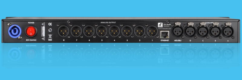 4 analoge Eingänge mit 135dB(A) Dynamik Unfang 1 AES/EBU Eingang (2-Kanal) AES67 + Dante optional |